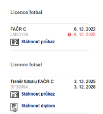 Vaše licence (fotbal, futsal)